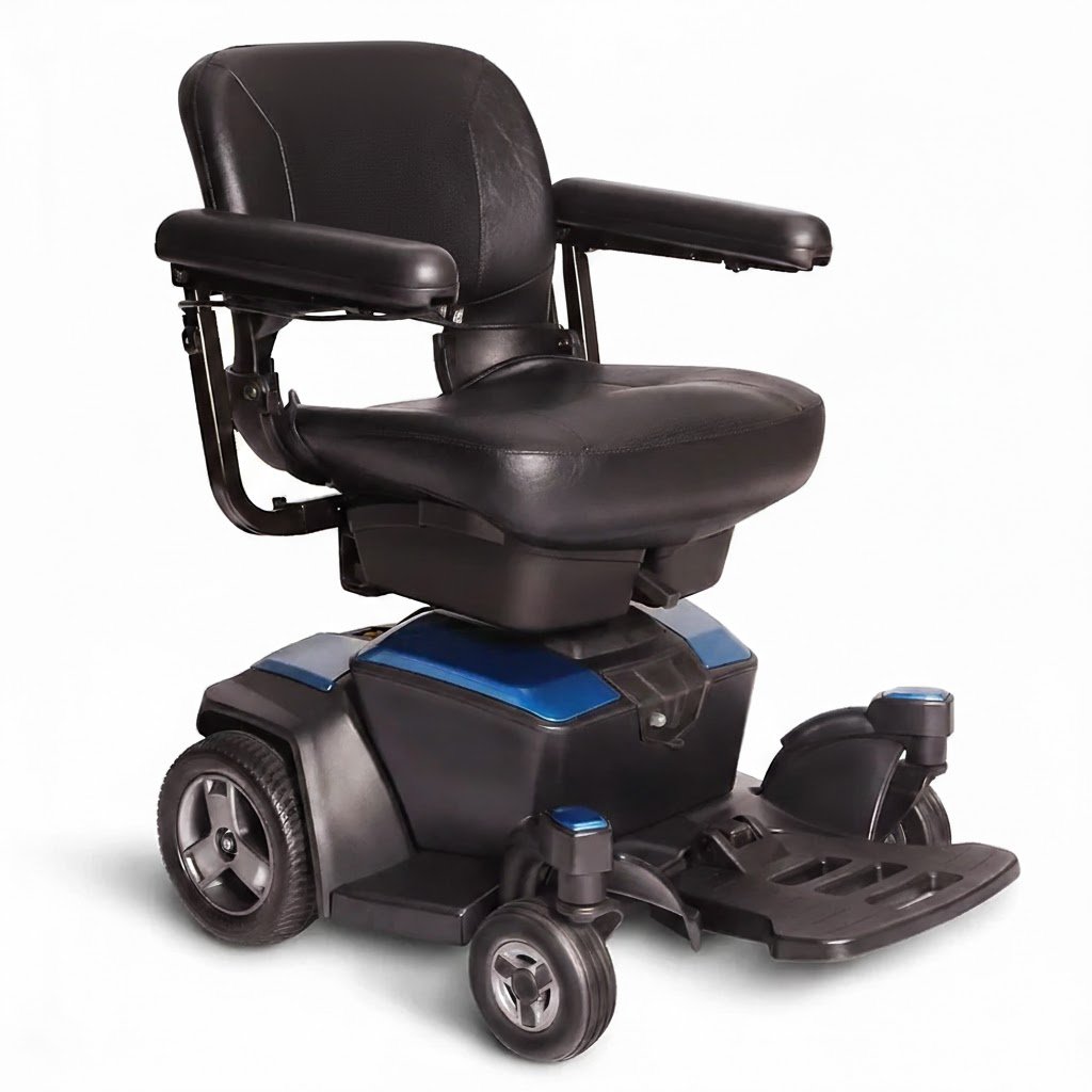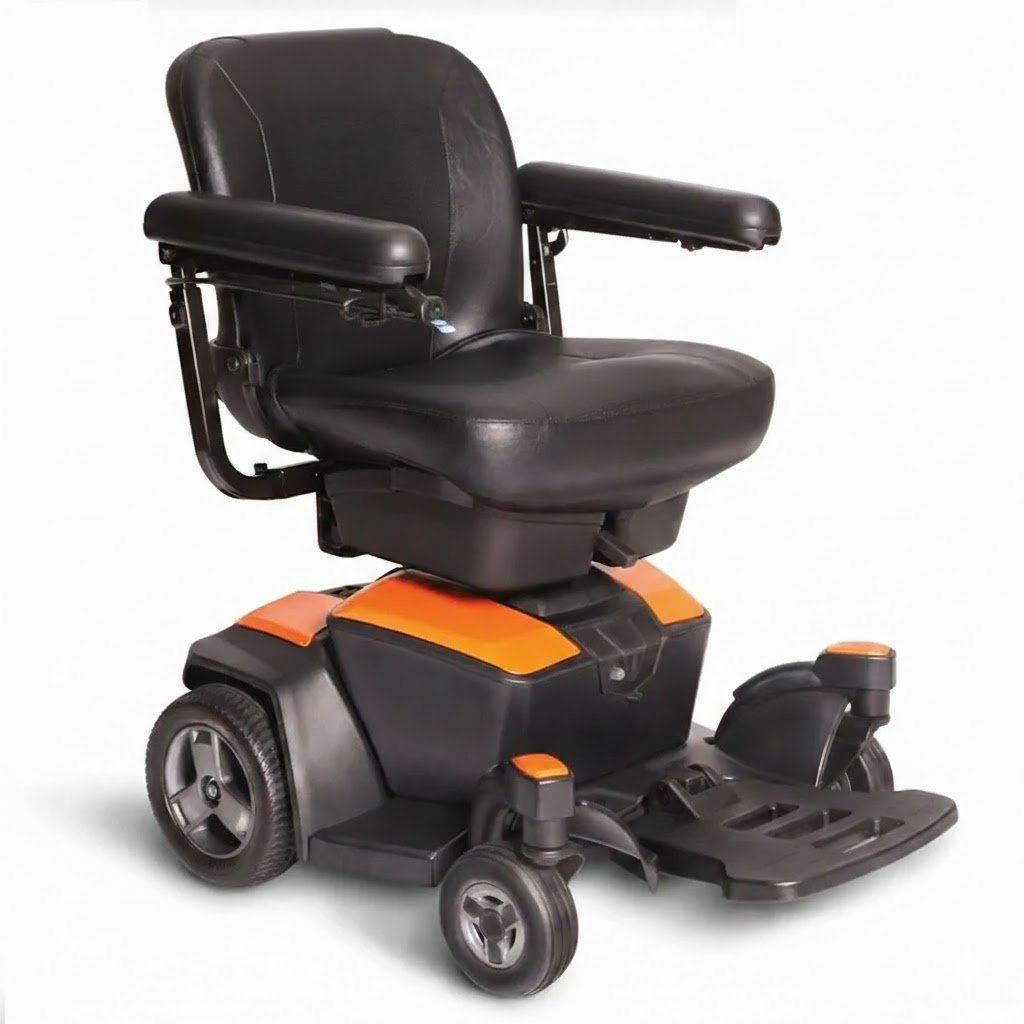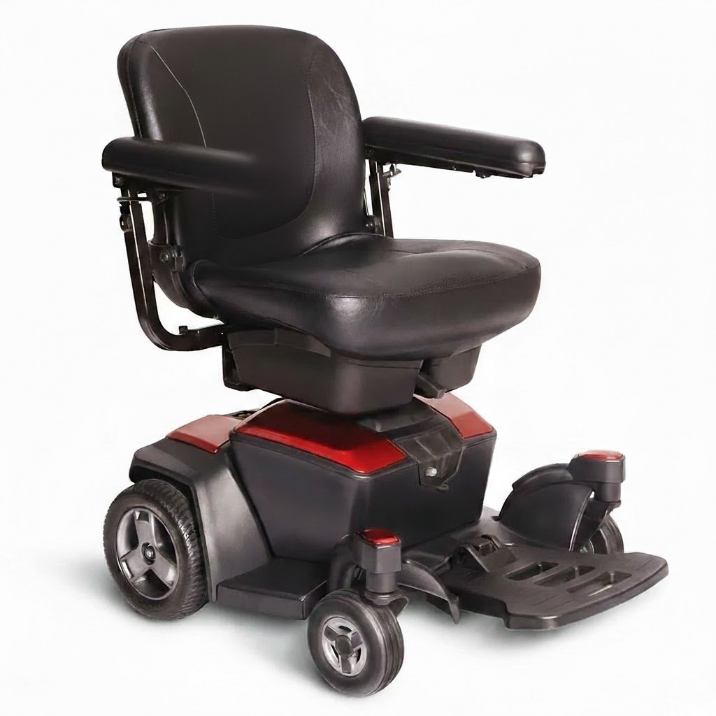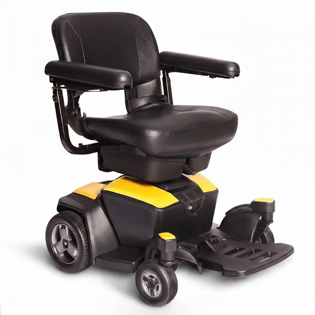 A compact and portable power chair designed for tight spaces, offering enhanced manoeuvrability and tool-free disassembly for easy transport.